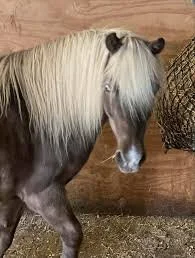 Iceman is a late teens Frisian cross who once had a career in dressage. He struggles with constant ulcers and anxiety and our vets do everything they can to make him more comfortable. He is an absolute love and appreciates having a less stressful life.