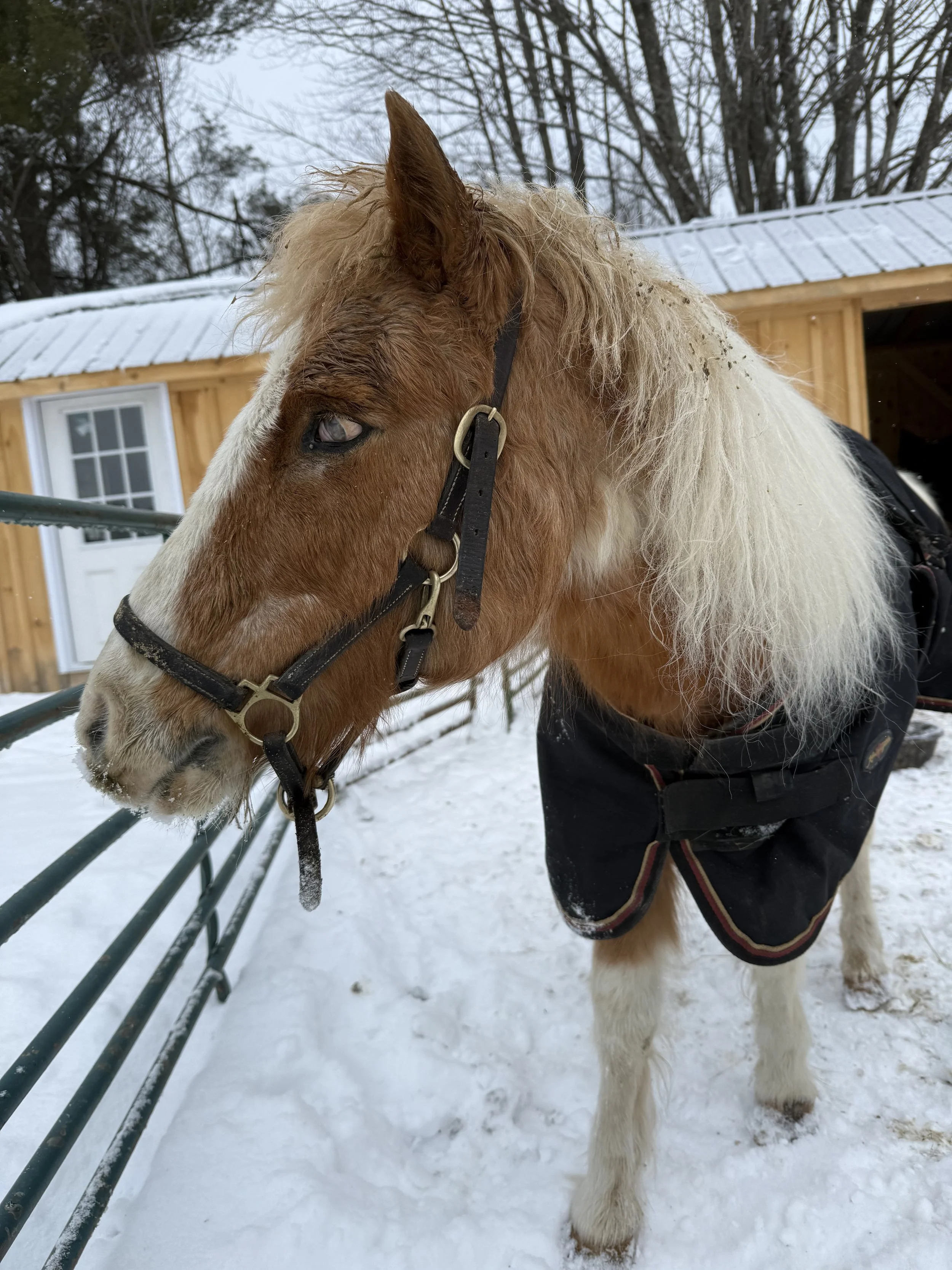 Jack is a mini horse in his early twenties. He came to MMFS in January of 2024. He is local to Vermont. A few months before coming to MMFS, he lost his best friend and soulmate. He was very depressed and needing to find a new herd and place to retire. Jack has very similar medical challenges as our other mini-horse Ally. We are hoping Jack will find new friends at MMFS and be happy in the remainder of his years.